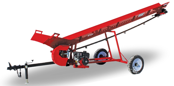 All of the Hud-Son single and double chain conveyors come standard with a 3.5hp (Gear Reduction Drive) gasoline engine outfitted with a powerful gear reduction box and V-belt drive system.