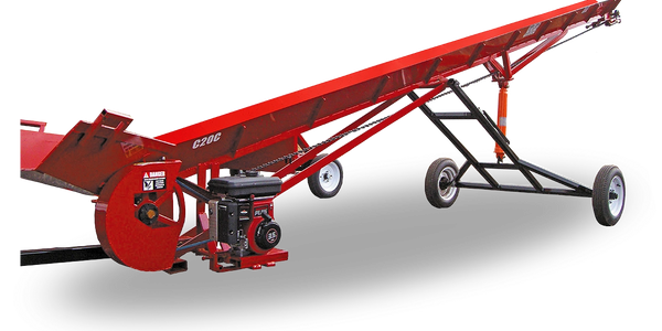 All of the Hud-Son single conveyors come standard with a 3.5hp (Gear Reduction Drive) gasoline engine outfitted with a powerful gear reduction box and V-belt drive system.